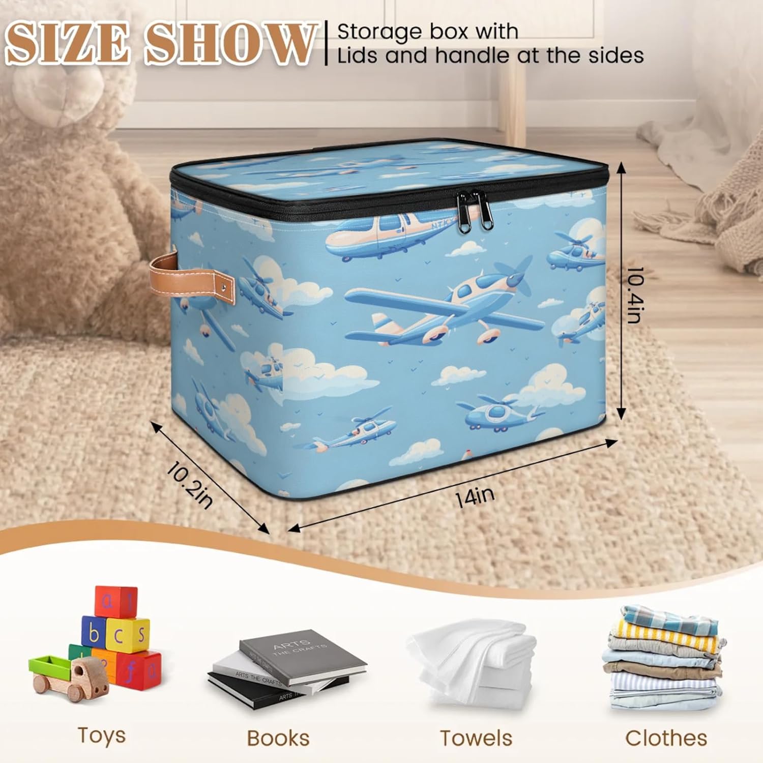 Stay Organized with Our Premium Fabric Storage Bin! Keep your home, closet, or office clutter-free with our large fabric storage bin with a double-zippered lid. Made from high-density 100% polyester (2mm thick), this storage box is both lightweight and durable, ensuring long-term use without wear and tear. The reinforced leather handles make it easy to carry, while the built-in wire frame keeps its shape whether full or empty. Why Choose Our Storage Bin? ✔ Space-Saving Foldable Design – Collapses flat when not in use, perfect for small spaces. ✔ Easy-Access Double Zipper Lid – Quickly store and retrieve items without hassle. ✔ Multi-Purpose Organizer – Ideal for clothes, toys, blankets, toiletries, pet supplies, and more. ✔ Perfect for Any Room – Fits seamlessly in kitchens, bathrooms, nurseries, dorms, RVs, and cars. ✔ Simple Maintenance – Hand wash or spot clean for easy care.