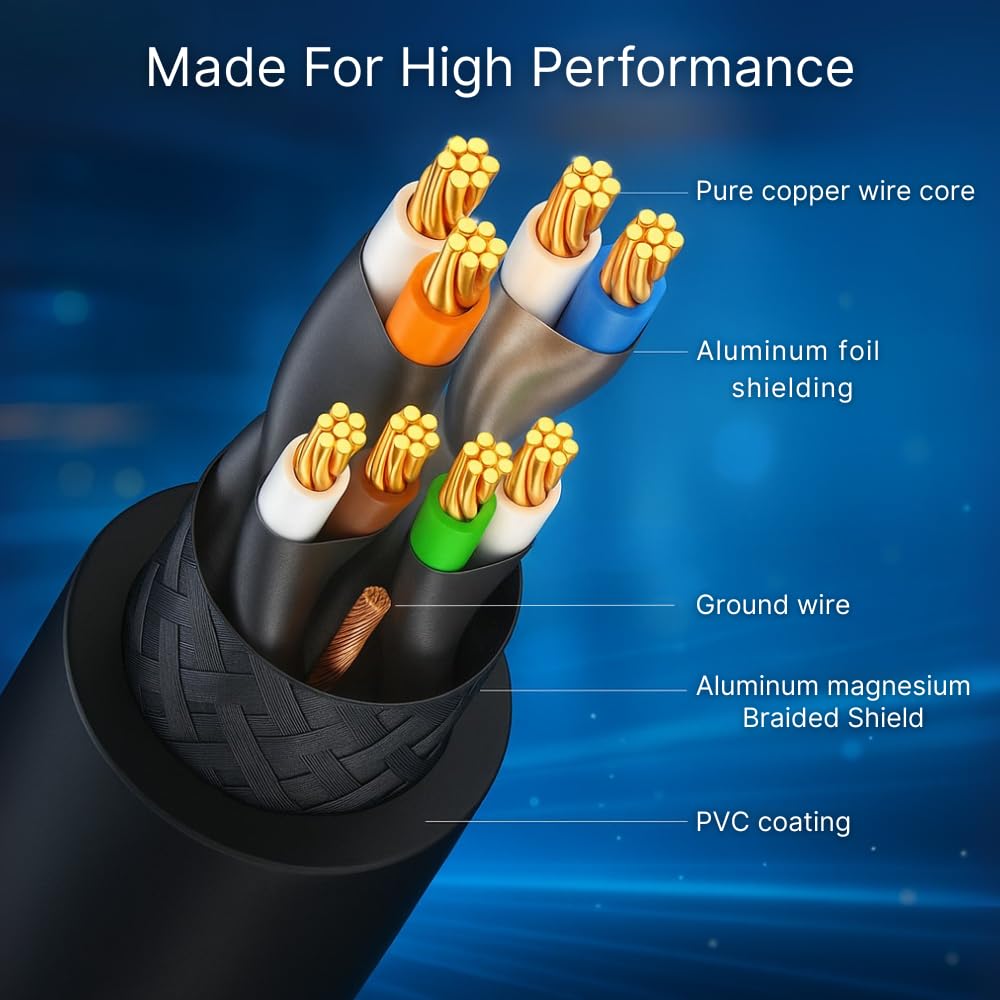 | Other Special Features of the Product | High Speed 40Gbps Data Transfer, Supports 2000MHz Bandwidth, Shielded for EMI/RFI Protection, Backward Compatible with Cat7/Cat6a/Cat6, Durable Gold-Plated RJ45 Connectors, Weatherproof and UV Resistant Jacket, PoE Compatible for Network Devices |