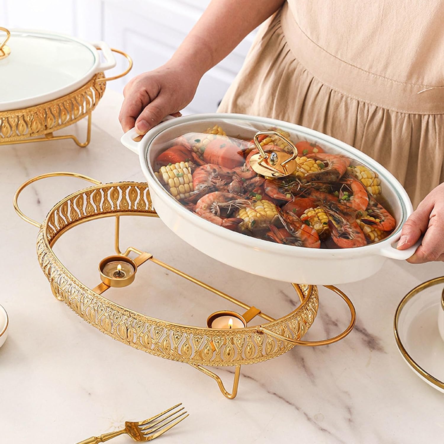 Description The item is a large capacity buffet furnace for heating. Adoption of premium material, sturdy and durable for long-term use. It's a convenient and elegant way to serve gatherings, events, buffets, hotel breakfast areas, brunches, catering, parties, wedding banquets, etc. Package Including 1 x Buffet Stove Note: If anyone has any questions, please contact us in time, we will solve it for you within 24 s
