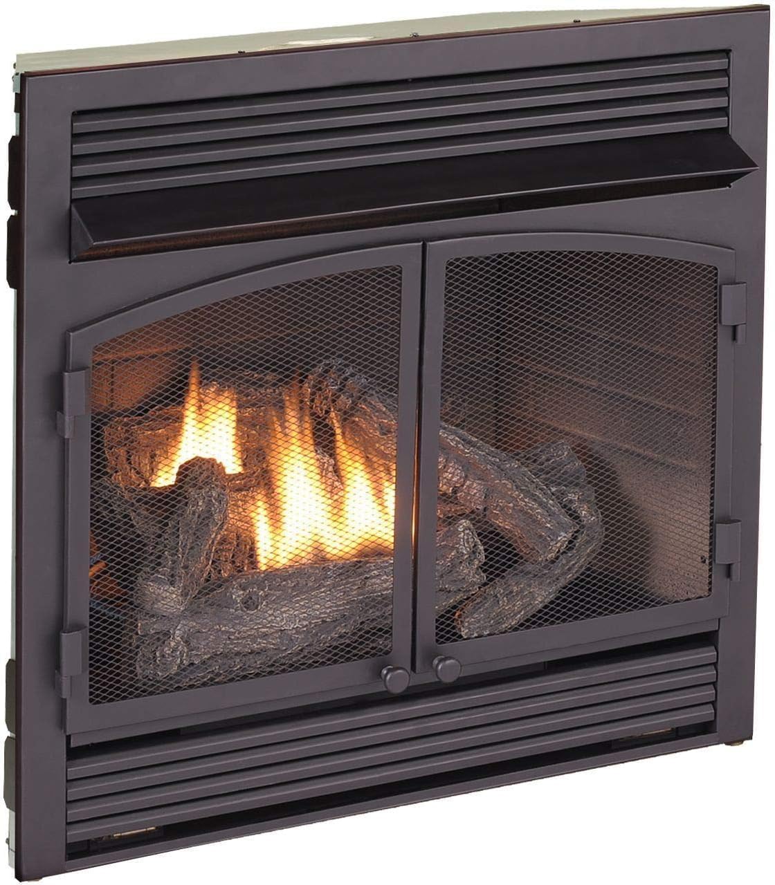 This Duluth Forge Full Size 400 Series Vent Free Zero Clearance Fireplace Insert allows you to build a custom fireplace for your home. The insert is zero clearance approved so it can be framed without adding air gaps or spacing on the sides and top of the unit. You can pair it with a face mantel or recess it directly into a wall of your home.The stylish screen doors and dual burner which produces generous flames along with a realistic sprayed brick liner creates a stunning home experience.This fireplace insert includes many features like thermostat control functions, Oxygen Depletion Sensor with automatic shut-off, battery assisted piezo ignition, and much more. Using Natural Gas or Liquid Propane, the Duluth Forge Vent Free Fireplace Inserts radiates 32,000 BTU of heat, enough to heat 1,500 square feet of living space.Product Features:•32,000 Maximum BTU using Natural Gas or Liquid Propane•Heats up to 1,500 sq. ft.•Patented Dual Fuel Technology•1 Unit operates off Natural Gas or Liquid Propane•Thermostat Control - Automatically cycles on and off to maintain desired setting•6 realistic hand painted Ceramic Fiber Logs•Vent free gas fireplace insert•Dual Precision Ported Vent Free gas burner•Economical: 99.9% efficient. No outside duct or chimney needed!•Safety Assurance: O.D.S. (Oxygen Depletion Sensor) included with automatic shut-off•Battery assisted Piezo ignition•Product Dimensions: 29.5" H x 29.1" W x 15.6" D•Product Weight: 69.5 lbs.•Gas Fireplace Model Number: FDF400T-ZCWhat's In the Box?- Vent-Free Fireplace Insert - Qty. 1- Hand Painted Ceramic Fiber Logs - Qty. 6Please Note: Check your local regulations before purchasing and installation. We recommend that our products be installed and serviced by professionals who are certified in the U.S. by NFI (National Fireplace Institute).