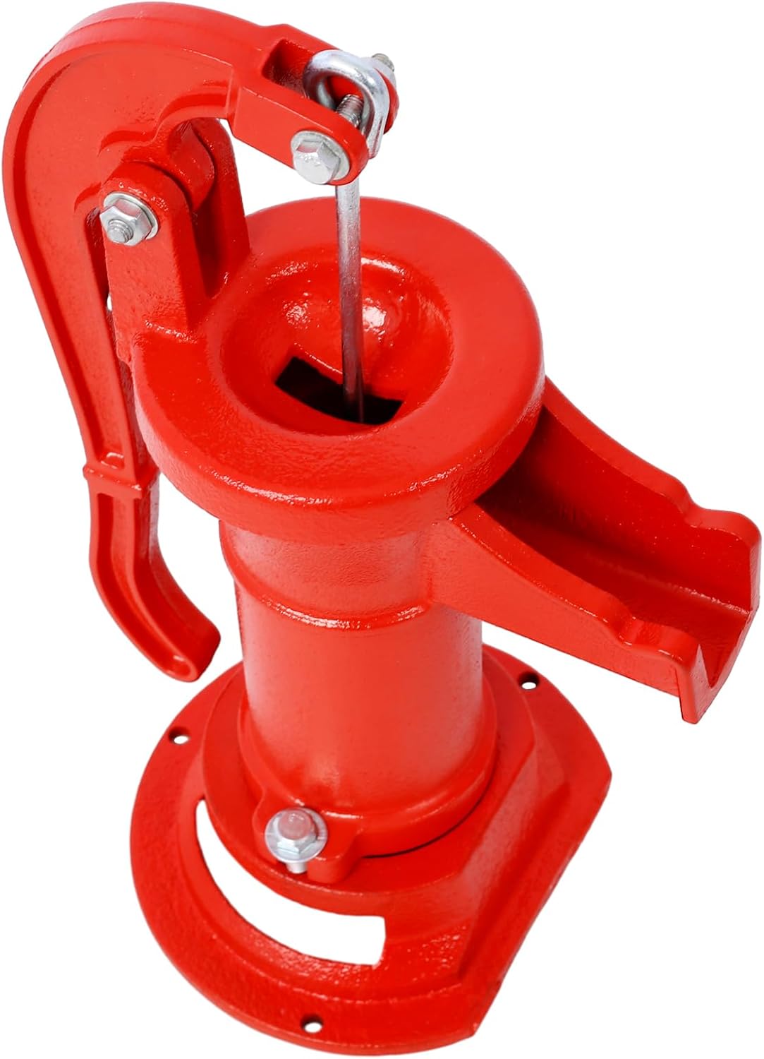 Antique Pitcher Hand Water Pump, Cast Iron Red Hand Well Pump 25ft Maximum Lift Manual Water Transfer Pump, Hand Operated Pitcher Pump for Outdoor, Yard, Pond, GardenSpecification:1. Material: Iron2. Color: As product image shown3. Size: 17*7.5*15 InchFeature:MULTIFUNCTIONAL UTILITY: Elevate the aesthetic of your outdoor space by incorporating our versatile water pump, which serves not only as a reliable water source but also as a charming decorative element for your patio or lawn. Experience the perfect blend of functionality and visual appeal with this antique-style pump.AUTHENTIC ANTIQUE DESIGN: Exuding timeless charm, our water pump showcases an antique-style hand-operated cast iron body, complemented by aluminum internal parts. This meticulously crafted design exudes elegance and nostalgia, adding a touch of vintage allure to your outdoor environment.EFFORTLESS OPERATION: Operating the water pump is a breeze, as it is entirely hand-operated and easy to use. Simply move the handle up and down to initiate the efficient pumping of water from the ground, allowing a steady flow to elegantly dispense from the tap. Embrace the simplicity and functionality of this classic design.VERSATILE APPLICATION: Tailored to cater to various outdoor settings, this garden pitcher pump is deemed ideal for backyards, campsites, farms, and picnic areas. Whether you require a reliable water source for gardening or desire a charming addition to your outdoor decor, this pump effortlessly meets your diverse needs.Package Included:1PC Antique Pitcher Hand Water Pump