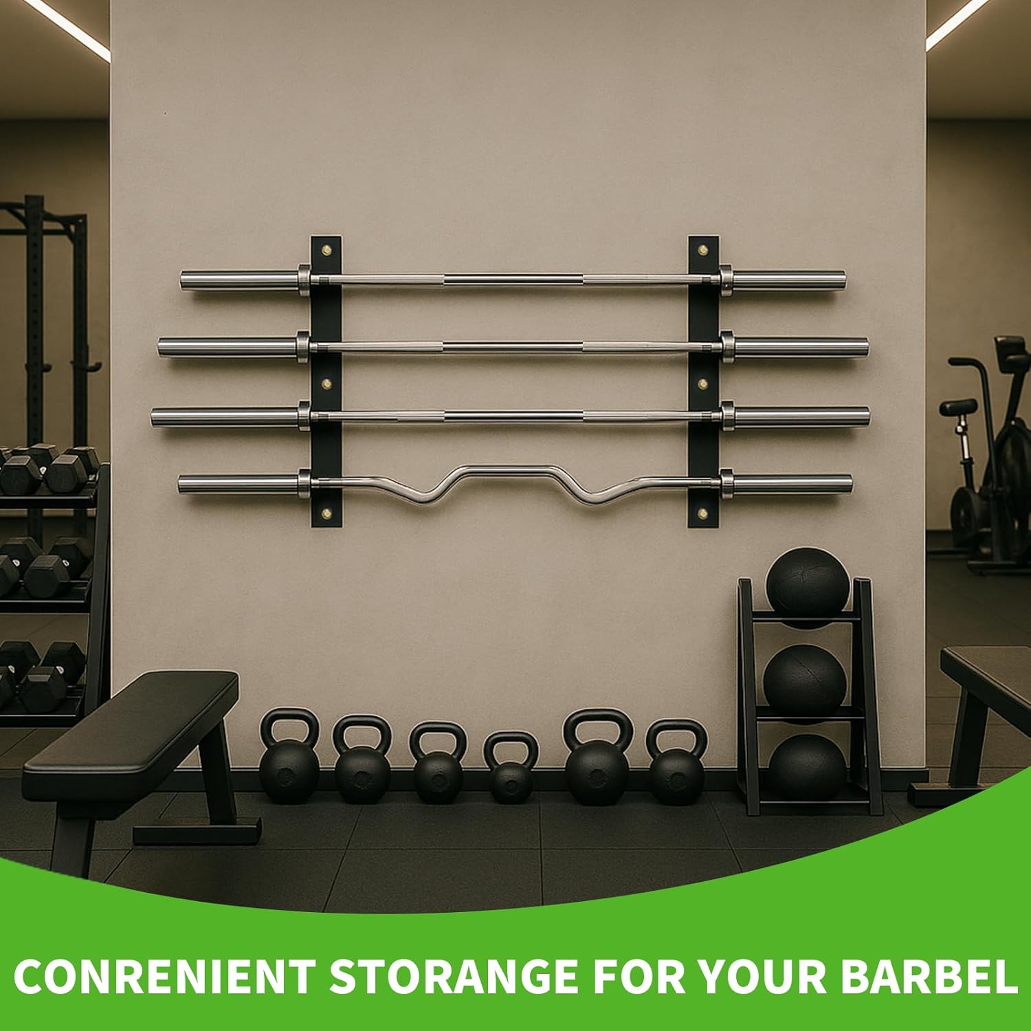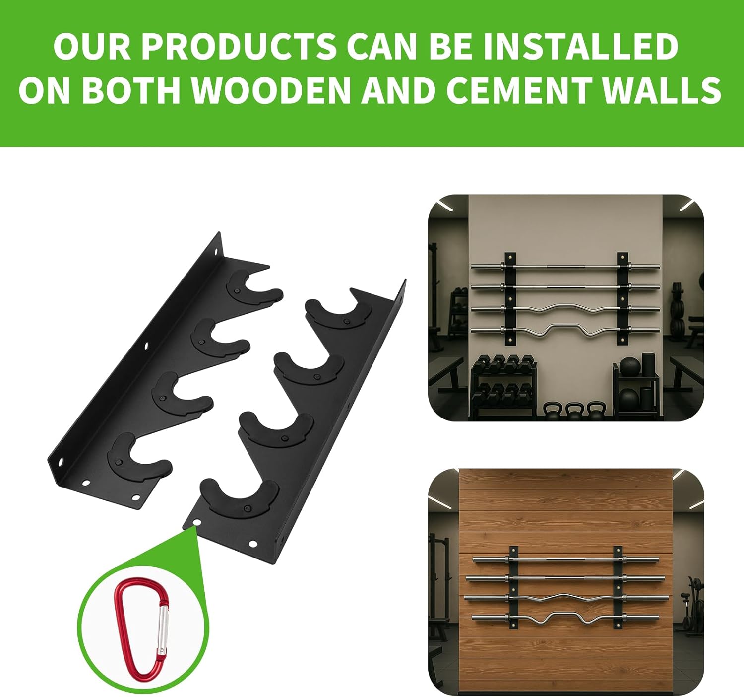 Tamisom Wall Mounted Olympic Barbell Rack: The Ultimate Space-Saving Storage SolutionIs your expensive Olympic barbell constantly in the way on the floor? reclaim your valuable training space with our Horizontal Barbell Wall Mount! This isn't just a simple hook; it's a premium barbell storage system designed for the serious athlete who values organization and equipment care.PRODUCT HIGHLIGHTS:HEAVY-DUTY CONSTRUCTION: Forged from high-grade steel and finished with a corrosion-resistant coating, this barbell rack is built to last a lifetime, safely supporting even the heaviest deadlift bar.MAXIMUM SPACE EFFICIENCY: Mount it in your garage, basement, or gym corner. This barbell holder transforms unused wall space into smart, organized storage for your barbell bar, effectively acting as a barbell stand on your wall.UNIVERSAL COMPATIBILITY: The generously sized brackets are designed to fit all standard 7-foot Olympic bars, curl bars, and trap bars. It's the most versatile barbell accessories organizer you can buy.EASY INSTALLATION: Everything you need to securely mount it to wall studs is included in the box. Get your barbell storage problem solved in under 10 minutes.PROTECTS YOUR INVESTMENT: The thick plastic padding cushions your bar, preventing unsightly scratches and damage to the knurling and sleeves, keeping your bar in competition-ready condition.IDEAL FOR: Garage gym owners, CrossFit enthusiasts, weightlifters, and anyone with limited space who needs a reliable barbell rack wall mount.