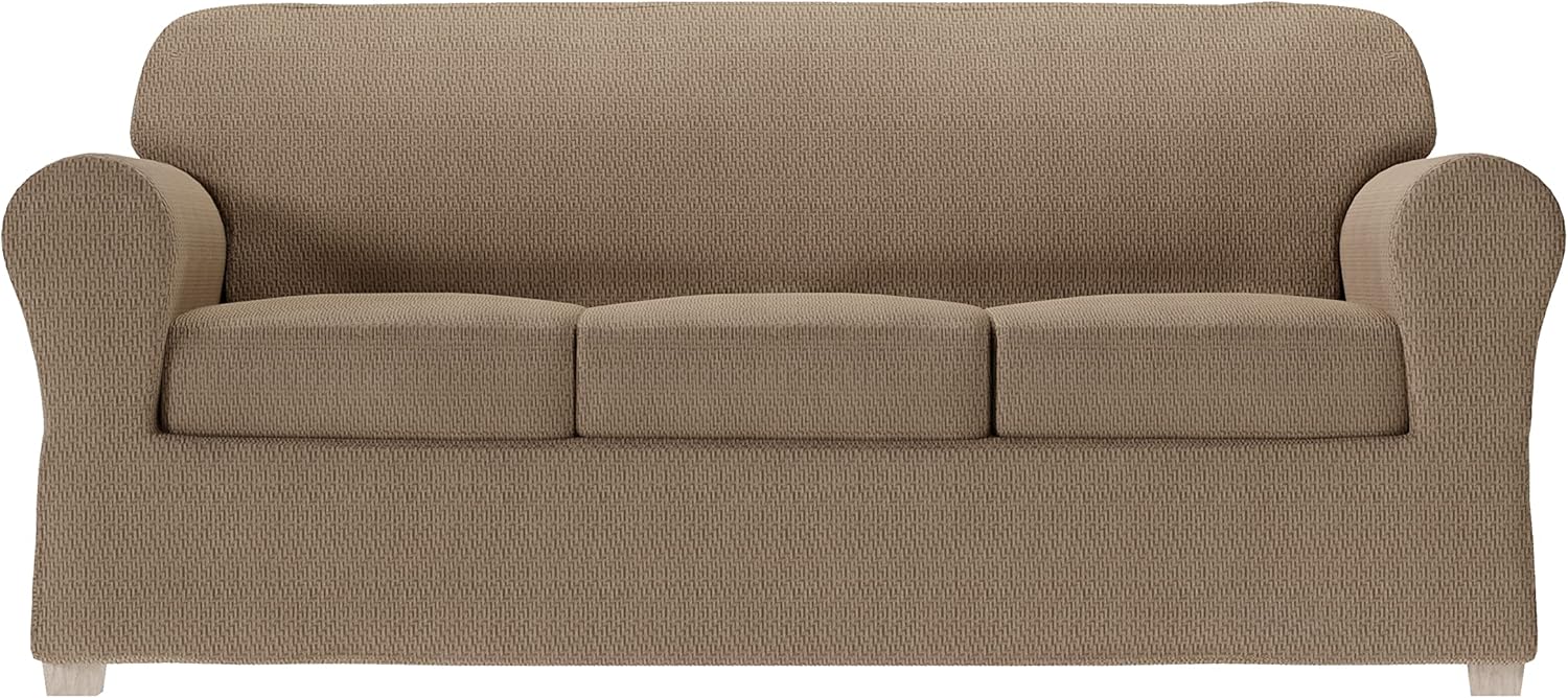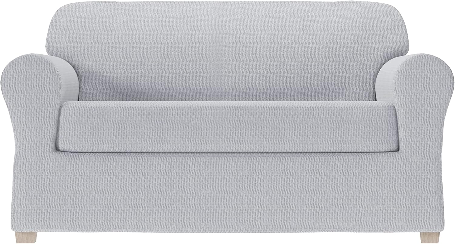 Simply Fit slipcovers make it so simple to give your room a fresh modern look while protecting your furniture too! There's no need to go through the hassle and expense of buying new furniture when you can simply apply a new 2-piece Steps slipcover over your comfortable old sofa. Thanks to its soft, stretchable fabric and easy-to-follow directions, you'll be impressed with how fast and easy it is to apply your new Steps slipcover. The 2-piece design features a slipcover and a separate seat cover. You'll save money, keep your old furniture out of the landfill and refresh your decor all at once. The cover's multi-way stretch fabric has a unique and modern-looking textured knit pattern. Available in ecru and a bold palette of other colors, a new Steps slipcover makes it easy to complement your existing decor or create a new focal point in any room. This value 2-piece slipcover has lots of premium touches, including substantial weight for durability, multi-way stretching for easy application, and wide elastic hems to help your cover stay in place. The cover is machine washable so it's easy to keep it clean and looking like new.